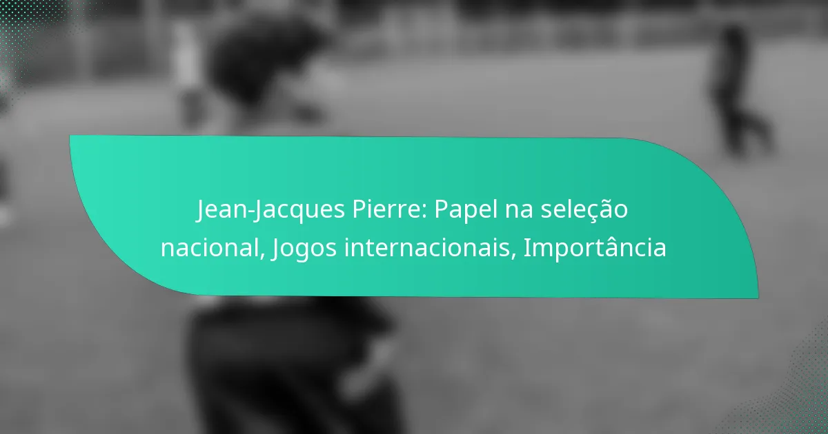 Jean-Jacques Pierre é uma figura fundamental no futebol haitiano, conhecido pelas suas contribuições tanto dentro como fora de campo. A sua influência vai além da sua carreira como jogador, impactando o desenvolvimento juvenil e a perceção geral do futebol haitiano a nível internacional.